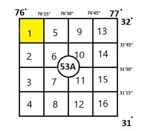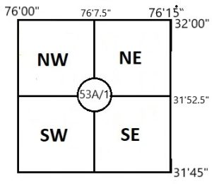 - They are numbered as 1,2,3,4,5……etc. For example, 53 number sheet envelops areas of Karnal district of Haryana and Western Uttar Pradesh.