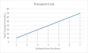- Uniform Transport Cost: This means per kilometer cost of transport is constant. If cost is 10/Km, you will pay 100 for 10 Kms., 200 for 20 Kms and so on.