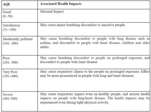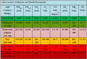 As the amount of different pollutants rises, the air quality is categorized into many categories such as good, satisfactory, moderate, poor, very poor and severe etc. Since, the different categories for different pollutants become very confusing for common people, CPCB has constructed a composite index from all these pollutants as visible in Table 2.