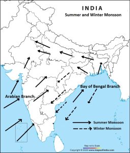 There are two branches of monsoon in India i.e. Arabian Sea Branch and Bay of Bengal Branch.